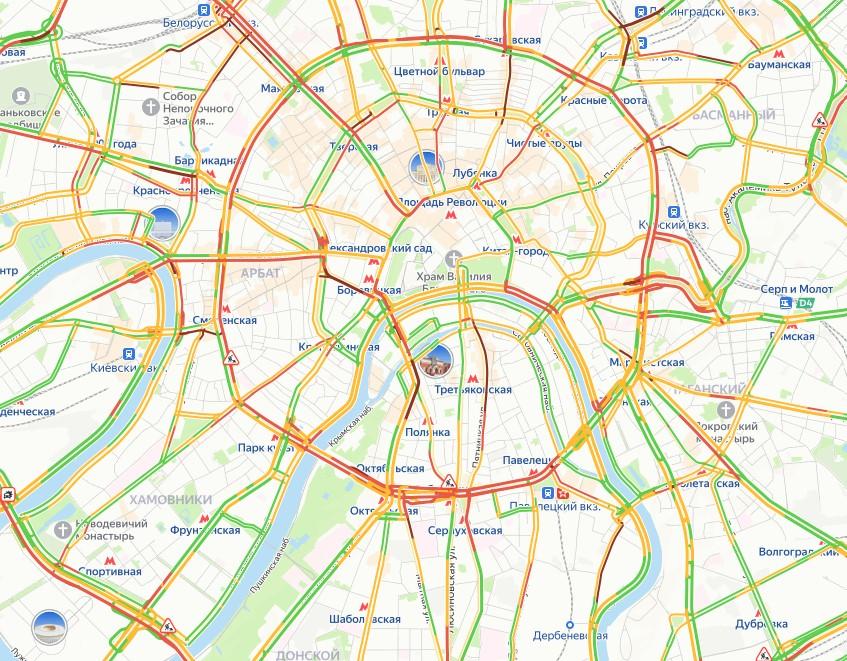 Данные сервиса «Яндекс.Карты» подтверждают масштабные затруднения. Плотные заторы зафиксированы: