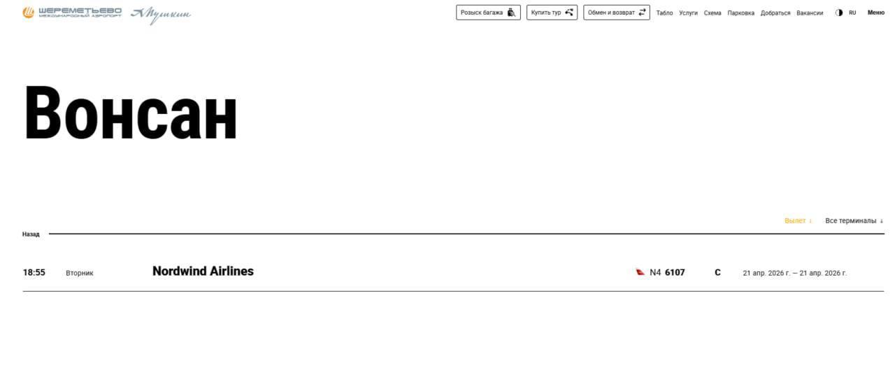 Согласно полученной информации, первый прямой авиарейс по маршруту Москва — Вонсан, новый курортный город в Северной Корее, состоится 21 апреля. Возвращение в российскую столицу намечено на 23 апреля.